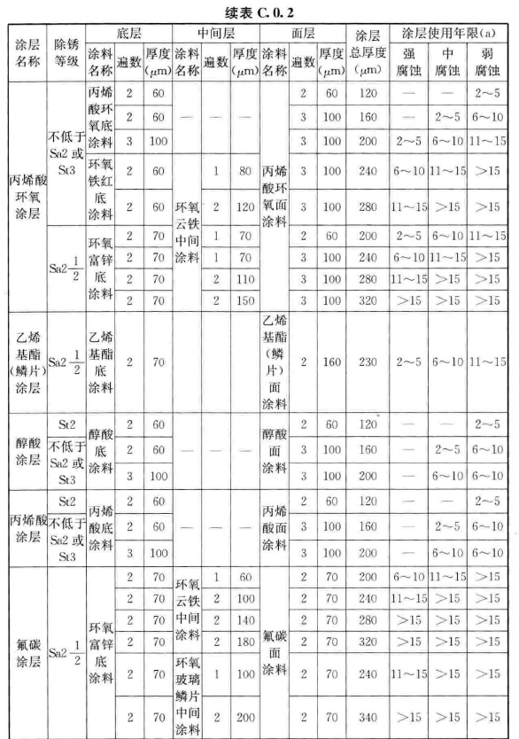 根據《工業建筑防腐蝕設計標準》GB/T 50046-2018第3.3.3條,防護層的設計使用年限應符合下列規定: