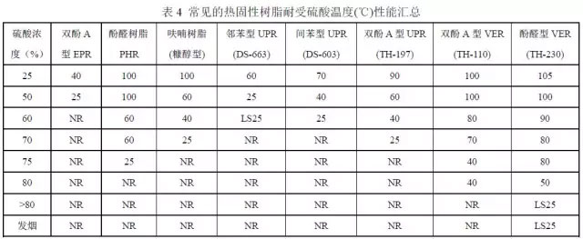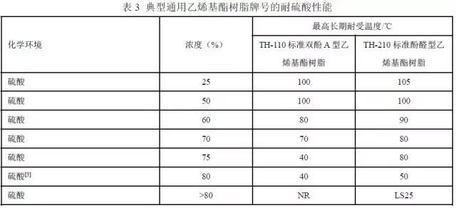 表3 是典型通用乙烯基酯樹脂牌號耐硫酸腐蝕性能的簡表。